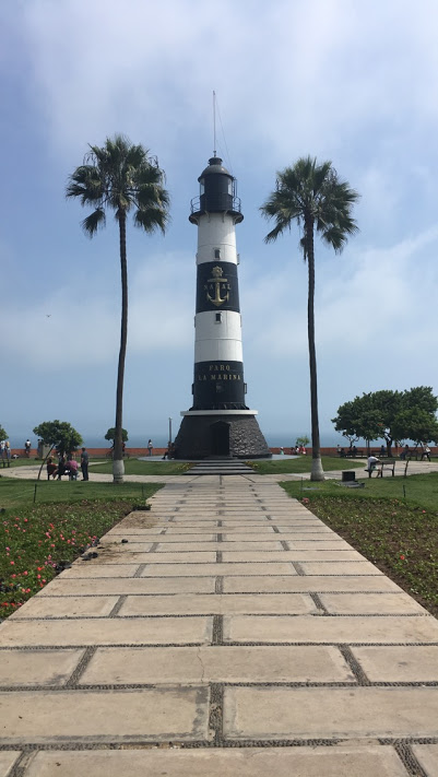 We happened upon La Marina Lighthouse while walking around Antonio Raimondi Park. It’s short and fat with classic black and white horizontal stripes.