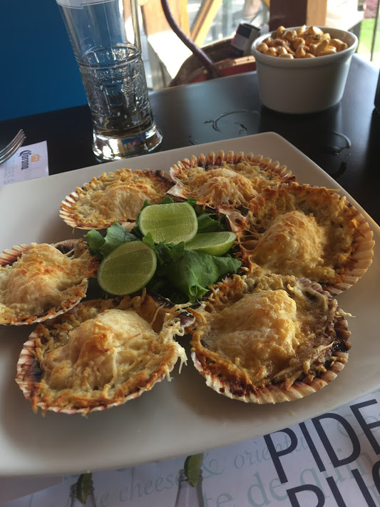 Chocitas con parmaseana (scallops with parmesan) served right in the shells. (Pictured above.) I was quite amused by this presentation and how pretty they looked, but Alex was surprised this was my first time seeing them served as such. He’d eaten them like this several times before.