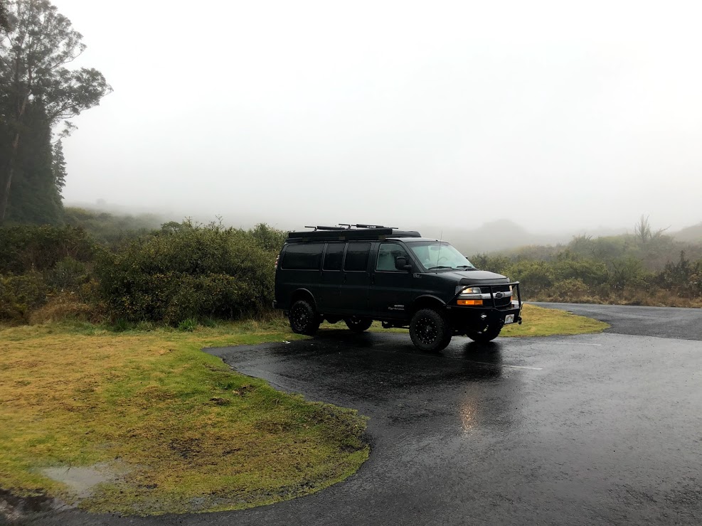 Despite the chilly conditions outside we stayed warm and dry in the van. (Keep reading for more on our Haleakalā experience.)