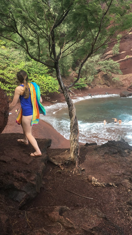 Kaihalulu Beach is a rare red sand beach that got it’s rust-colored hue from a crumbling cinder cone.