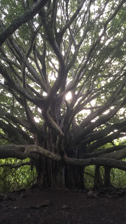 A little ways into the trail we came upon a Banyan tree. It is one of the most peculiar trees I have ever seen. Its branches were old and heavy, as if they had been there for ages. Protrusions off the limbs, called aerial prop roots, extended down to the ground and functioned as additional trunks, providing what appeared to be some much needed support.