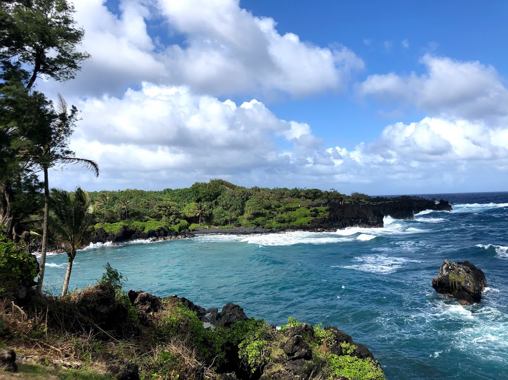 A bit further past Hana town is Waiʻanapanapa state park, a black sand beach.
